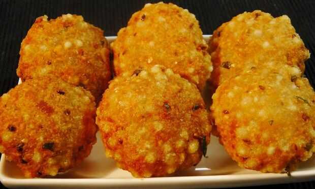 Ahora hacer hamburguesas pequeñas de mezcla Sabudana Vada.