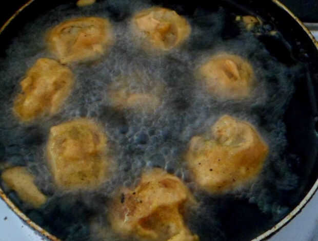 -Freír las albóndigas de patata hasta que se vuelvan luz marrón en color.