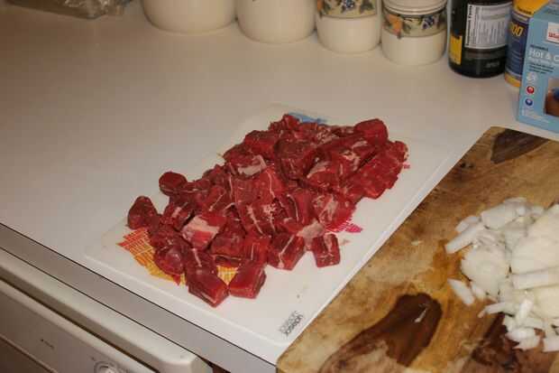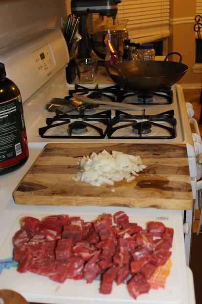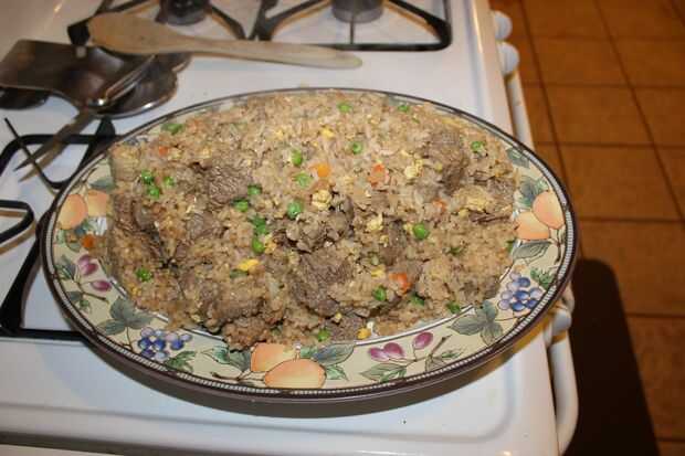 Preparación de la carne: Picar la carne en trozos pequeños. Cuánto usas y que tipo de carne que elija depende de usted. Carne tierna, recomiendo ir con un corte de calidad superior. Filetes son siempre una buena opción pero pueden ser en el lado caro de lo que debería ser una fuente de bajo costo. Manténgase alejado de carne guisada o cortes super grasos. Porque la carne se cocina sólo durante un corto periodo de tiempo, esos recortes no pueden terminar siendo tan tierna como es posible que prefiera. Si usa pollo, asegúrese de que no sobre cocinar en la etapa inicial. Se necesita sólo un corto período de tiempo, como la carne continuará cocinándose una vez que el arroz se añade al plato. Esto también es bastante bueno si decides cocinar el plato con solo el huevo.