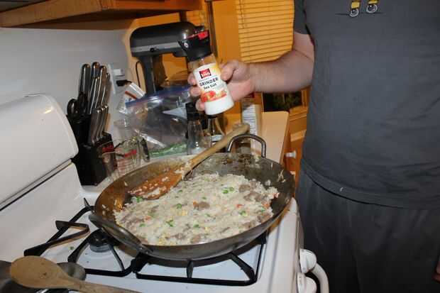 A medida que agrega las salsas usted comenzará a ver el arroz oscurecimiento a lo que usted vería en las mesas de hibachi. Probar la mezcla hasta que la marca correcta. Otra vez, si es suave, intenta añadir alguna salsa de soja adicional primero, luego la sal.