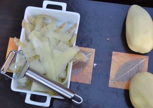 Friendo pieles de patata y plátanos para aperitivos (3 / 5 paso)