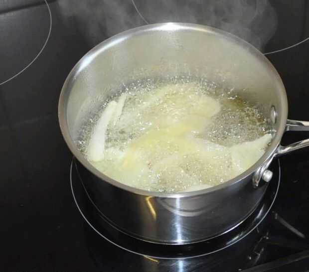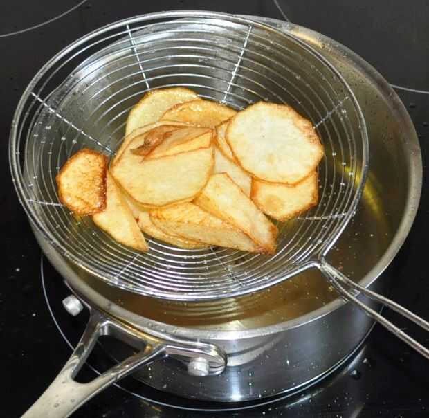 Después de los hollejos (cáscaras) do fino en rodajas patatas y hacer sus propio "hervidor frito" patatas fritas (chips). Llevarlos a cabo cuando empiezan a dorarse.