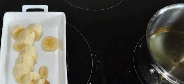Después de que algunas rodajas de banana. El plátano rebanadas marrones no tan sólo calentar bien antes de llevarlos a cabo.