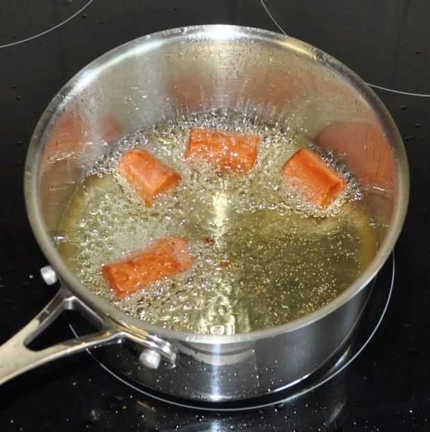 Paso 4: Freír las pieles, papas, plátanos y salchichas