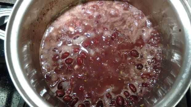 Cocinar a fuego lento la olla de frijoles en bajo, revolviendo de vez en cuando durante unos 30 minutos.