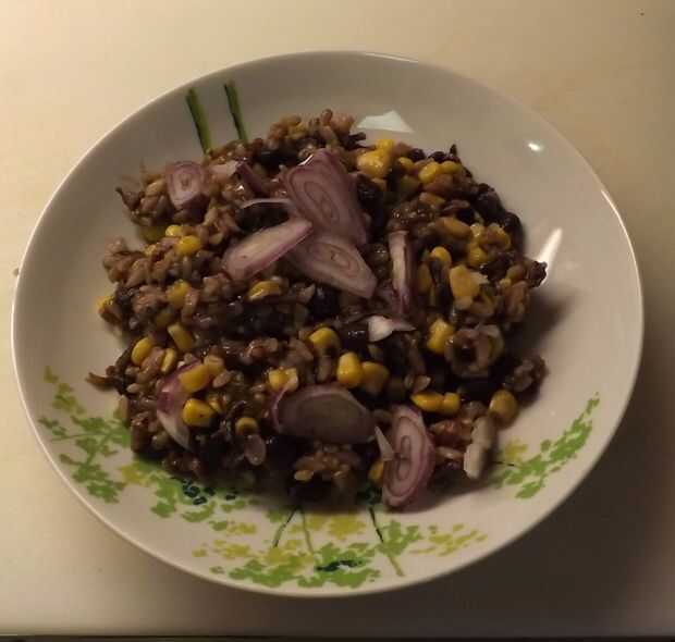 ingredientes1 taza de quinua sin cocerMezcla húmeda1/3 taza aceite de oliva1/3 taza de jugo de limón o Lima1 puñado de cilantro picado1 puede frijoles negros3 mazorcas de maíz, preparado y corte de mazorca1 tomate grande2 pimientos de cada dulce mini