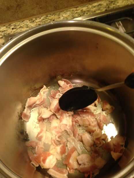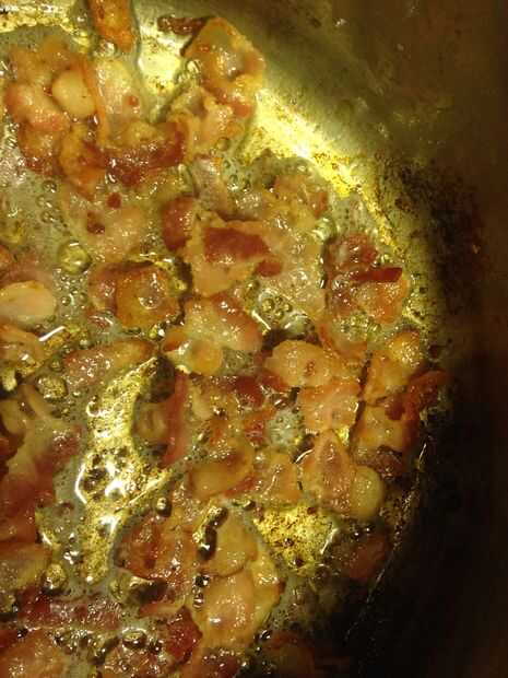 Dorar el tocino en la olla