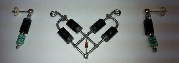 Friki pendiente de diodo Valantine corazón y pendientes de diodo y resistor. (2 / 2 paso)
