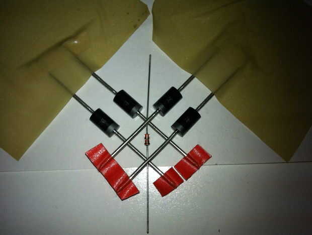 Grabó el diodo hacia abajo por lo que pude soldarlos junto primero. Después de eso, corté los cables extras, lijados las juntas y lo hizo la cadena de bucle.