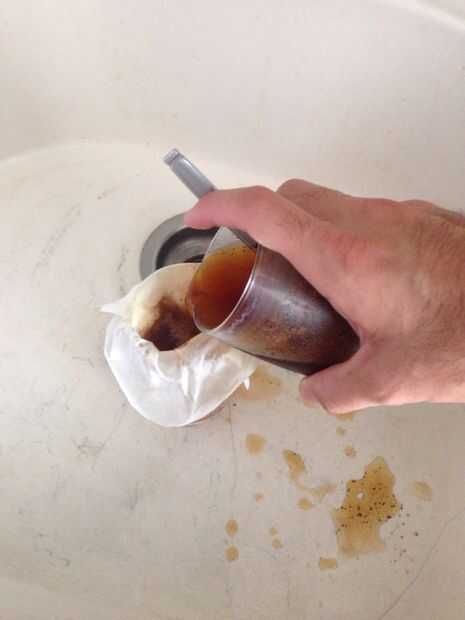 2) verter la mezcla en el filtro, asegurándose de que el filtro no caiga en el vaso.