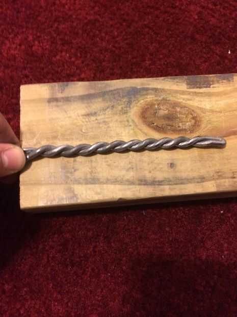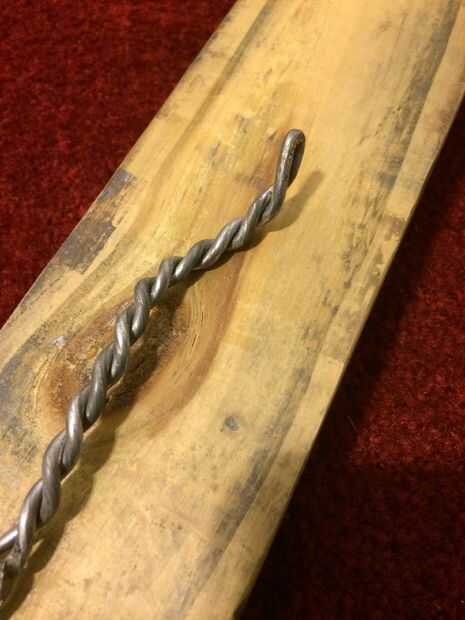Después es volver a ser recta, comencé a martillar el mango para darle un giro más plano más fluido. También quería la punta torcida para ser puntiagudo como pude conseguirlo porque eso es lo que hace la lanza en el espectáculo.