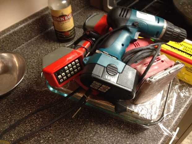 Usted tendrá que presionar suavemente sobre el salmón como se sienta en la nevera. Un tablero, placa, bandeja o cualquier otra cosa va a hacer muy bien. Poner algo de peso en él. Normalmente utilizo las mercancías conservadas, pero ya que estoy presentando esto como parte del cocina poder herramienta desafío pensé haría amp para arriba un poco y peso hacia abajo con herramientas eléctricas.