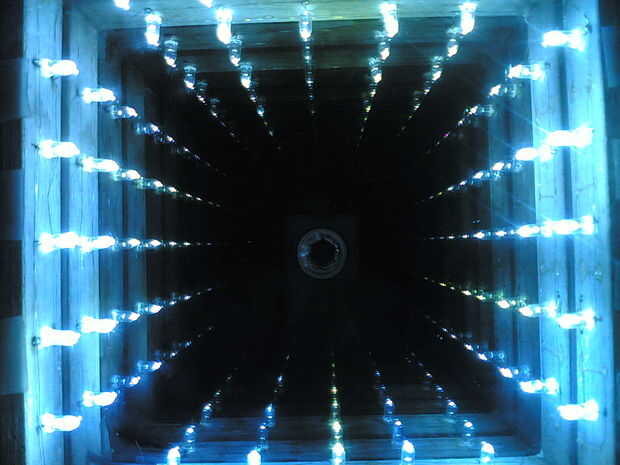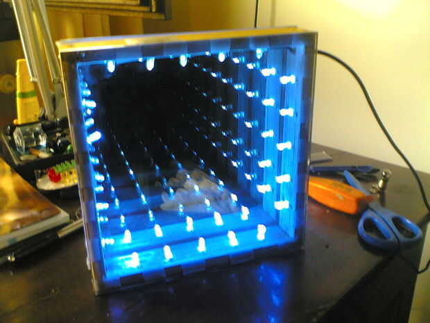 ver el video aquí: http://www.metacafe.com/watch/865086/cool_diy_infinite_led_tunnel/