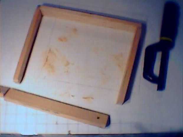 ahora, cortar la barra de madera para crear un cuadrado del mismo tamaño del espejo pero no pegamento, También Perfore un orificio para la alimentación, como se puede ver en la imagen.