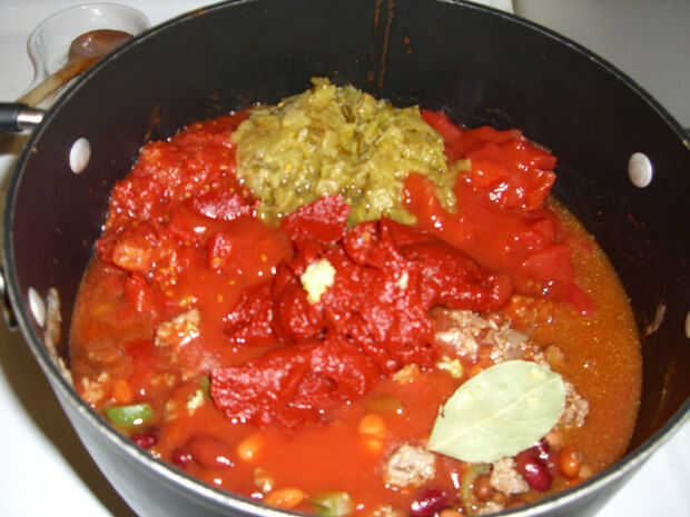 Añadir los ingredientes restantes excepto el polvo de Chile. Sazonar con sal y pimienta.