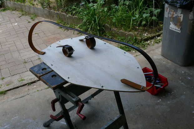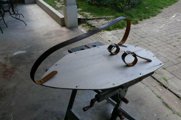 usar correa de cuero, acero, madera, pintura y algún betún para teñir la madera de la parte de la pantalla para hacer esto a mi taller en mi casa