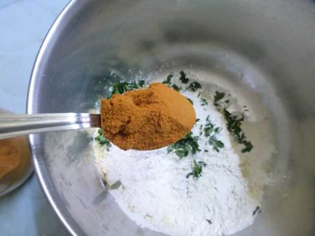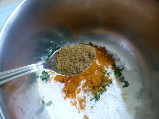 • Finalmente picar un puñado de hojas de curry y añadir a la harina