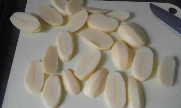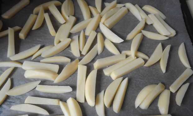 Pelar el potaoes y cortarlas en forma de frie.