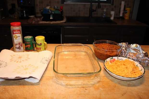 He utilizado un recipiente de cristal grande para cocer el Chile queso fritas en el horno, pero también se podría utilizar una hoja de galleta.