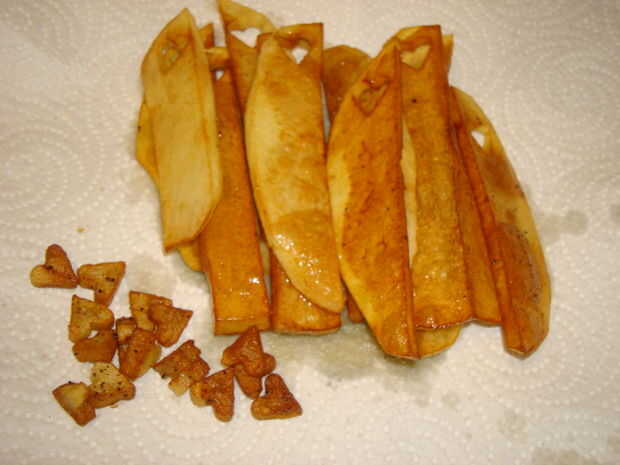 Insertar el corazón en el corazón en forma de tapas de la patata.