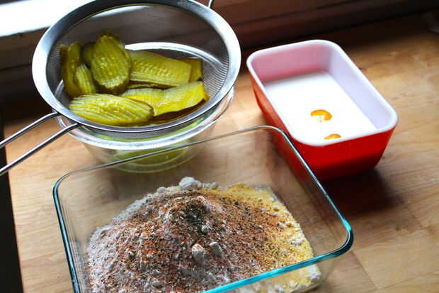 cuando me enteré sobre pepinillos fritos, pensé que sería graves. Muchacho estaba mal! Oh sí, no olvides el RanchoPaso 1: ingredientes EssentialsHamburguesas cortan el eneldo encurtidos - hacer cualquier clase son simplemente mi favorito.1 huevoFlor(