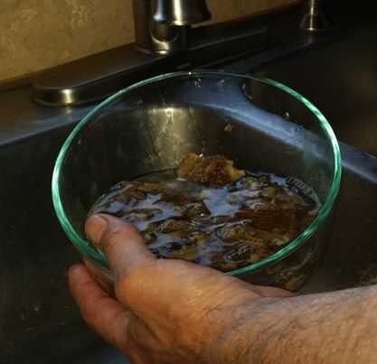 El agua puede convertirse en decolorarse después de algunos días, no gran cosa, descarga y enjuagar bien antes de continuar la preparación. Blot les seca con una toalla de papel.