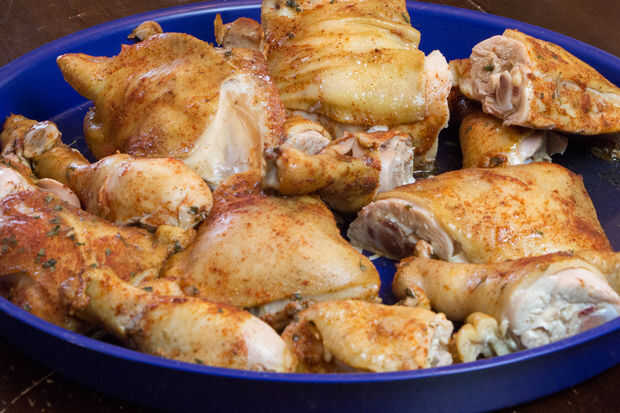 me encanta el sabor de la piel de pollo frito crujiente, pero odio que trata con el lío aceitoso de freír. Esta receta fácil le da el sabor de pollo frito sin todo el lío.Paso 1: Utensilios e ingredientes Ingredients:8-12 muslos de pollo, hueso y pi