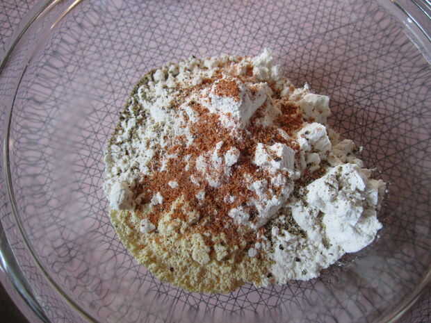 Sugiero poner en por lo menos 1 cucharadita de cada sal, pimienta, y cualquiera que sea la especia te eligen. Desea que la mezcla de dragado que muy sabroso - su producto terminado casi todo su sabor obtendrá de él!