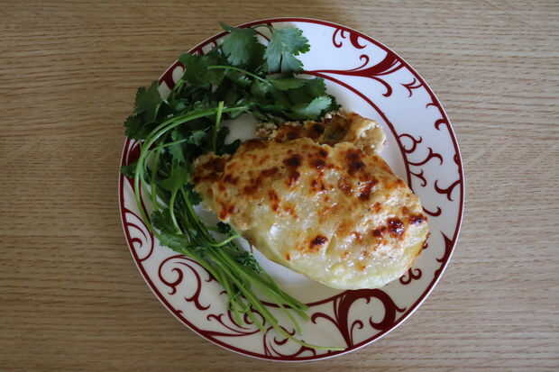 Esta receta la patata fue descubierta accidentalmente cuando estaba cocinando algunas sobras cocido al horno patatas con mantequilla. Cuando terminé de cocinarlos, tomé un bocado y se dio cuenta de que era la receta de patata buena estuve tratando y
