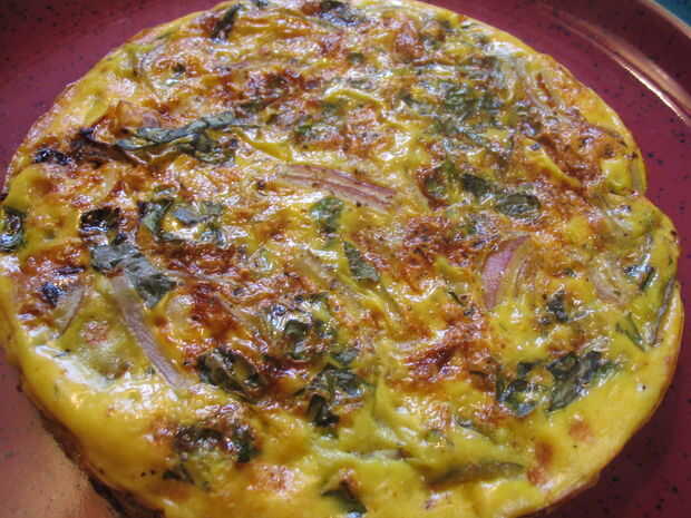 Organizar su frittata más ingeniosamente que tengo. Trozos de albahaca que se vea mucho más clase.