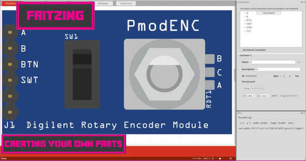 Durante el proceso de creación de piezas de Fritzing para Digilent llevo en contacto con el experto de piezas Fritzing. Gran parte de la respuesta que me dio fue que no encontré información en su página web o en cualquier otro tutorial de piezas que pude encontrar. Debido a esto me sentía que necesitaba para hacer mi propio Tutorial combinando toda la información que falta con otros tutoriales.