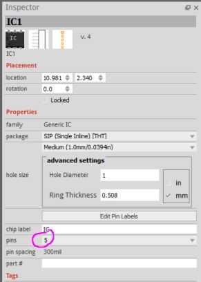 A continuación, cambiar el número de pines a la cantidad que desee. Si el plan sobre el uso de la imagen generada automáticamente de protoboard es muy importante que usted consigue el número de pines derecha, porque cambia el número de pines en el editor no cambia el gráfico.