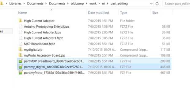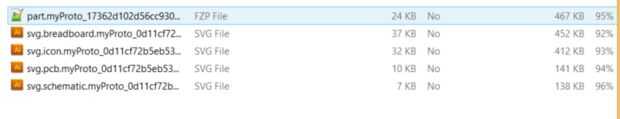 Primero necesitamos una prueba sujeta a editar código con. Para empezar permite primero editar una parte. Subir todas las imágenes SVG para su parte y asegúrate de guardar tu parte. Su parte de exportación a una carpeta de su elección. Una vez está todo hecho ir a su carpeta y luego renombrar el archivo. Cambiar el formato de archivo .fzpz en formato zip.