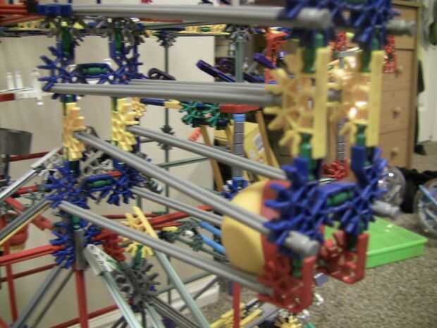 Aquí es una máquina de la bola de k'nex que fue construida por un niño de 7 años!