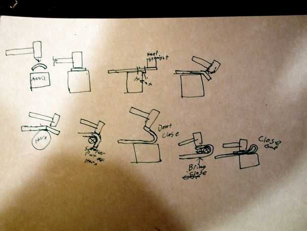 El truco con el ojo, es que necesitas dejar material del remache o forgeweld, así como que la curva que a tu alrededor necesita hacer la sección extra plana colocar en la parte superior del cuerpo principal.