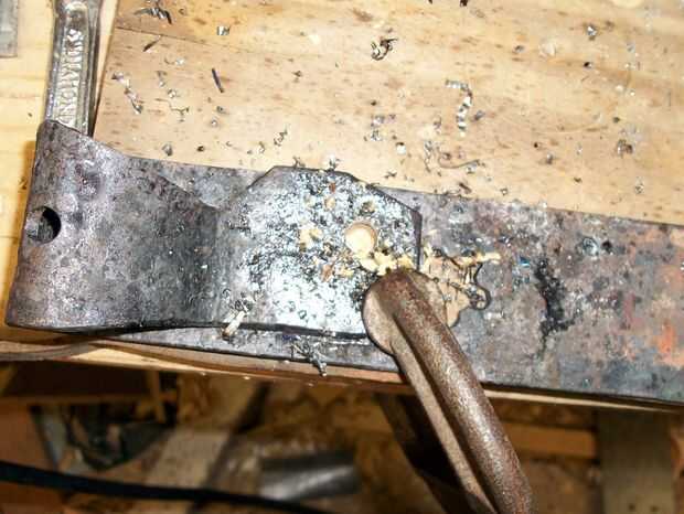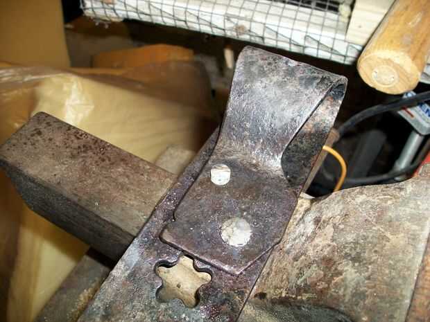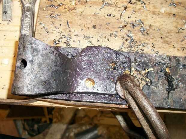 Si, como yo, tuvo algunas dificultades con la soldadura de Fragua, los remaches son una opción. Pero soldadura de la fragua casi la perfecta unión, las dos piezas de metal son como uno. Mi remaches fallará eventualmente, el tiempo dirá cuánto.