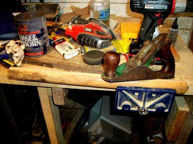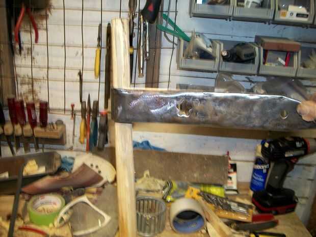 Perforé un orificio de 3/8" en el mango para que pueda colgar el mango y la hoja juntos y perder menos espacio.
