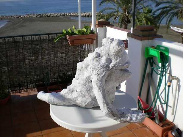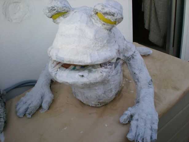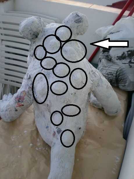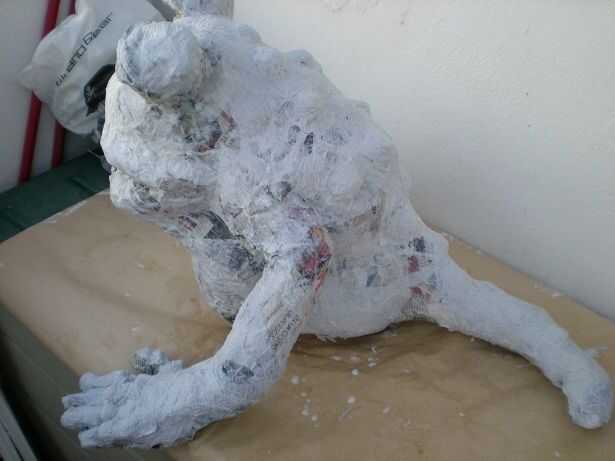 5 º Para poder pintar damos una ultima capa de papel de cocina todo lo rugoso podáis, de esa manera le damos textura además, y en esta fase añadimos detalles de verrugas en el lomo. 5 º para poder pintar dar una última capa de áspera de papel de cocina que puedas, para que dar además a textura, y en este momento agregamos detalles de verrugas en la columna vertebral.