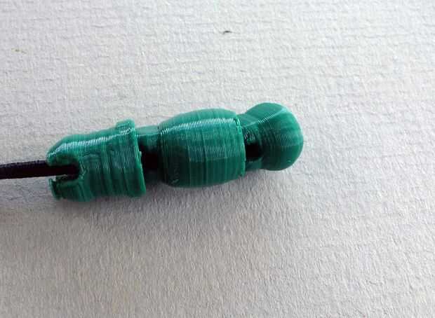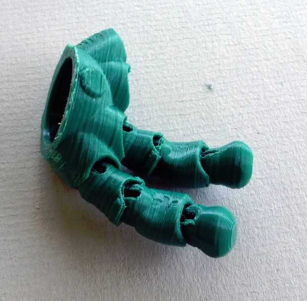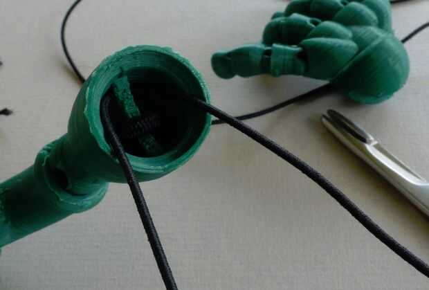 Estos son un poco torpes que hacer tengo miedo. La cadena los dos dedos a la vez, asegurar con un nudo. Una vez que los dedos se finshed, pegamento de la hand_ball.stl a la mano. La palma de cada mano tiene un círculo que actúan como un indicador. Una vez las manos, pueden ser cadenas en los brazos con una cuerda elástica de 1mm, usando el bucle dentro del antebrazo. Encontré la más forma de hacer esto, es tirar el antebrazo encordado del codo y la cadena a través del hilo de rosca. Entonces puede estar vinculada al lazo de la bola de la mano.
