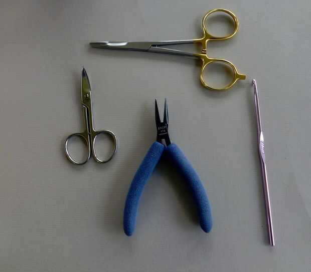 II) un gancho de crochet puede ayudar a tirar la cuerda por los agujeros y está disponible barato en tiendas de hobby o cualquier lugar que vende suministros de costura.