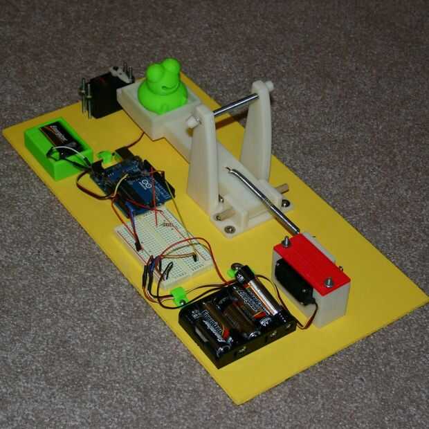 El concepto para enrollar y soltar el resorte de catapulta viene de Arduino controlado catapulta por UnusualTravis