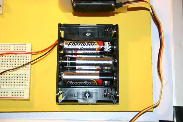 Tornillo del soporte de la batería AA a la madera contrachapada.
