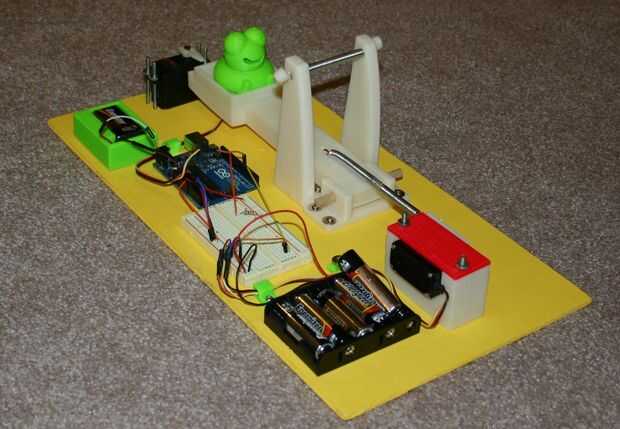 Mundo de Froggy, el parque de diversiones aventura ranas de plástico, fue necesario retroceder la rana de una vagón a la catapulta.  Porque no sé si sería la rana vertical o lateral, y en qué orientación--la garra era un desafío.Leí acerca de la "gar
