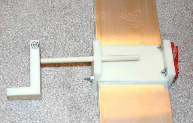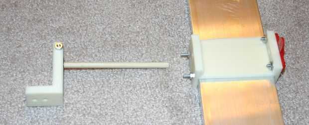 La madera dowell (1/4 de pulgada de diámetro) debe encajar en el cojinete y deslizarse a través de dos orificios en el soporte de balancín al.