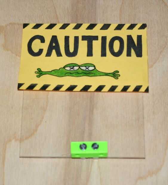 Para evitar el litigio de los "abogados de plástico aventureros", construí una muestra de la precaución--que indica lo que sucederá si una rana se sienta en la cuna de parada final.