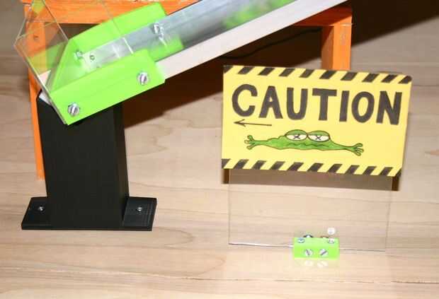 Mundo de Froggy, el parque de diversiones aventura ranas de plástico, fue necesario retroceder la rana de una vagón a la catapulta.  Porque no sé si sería la rana vertical o lateral, y en qué orientación--la garra era un desafío.Leí acerca de la "gar
