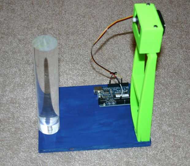 Adjuntar un 1 1/2 pulgada de diámetro, barra de 7 1/2 pulgada largo acrílico a un 8 pulgadas por 6 pulgadas por 1/2 pulgada (contrachapado pintado) base.