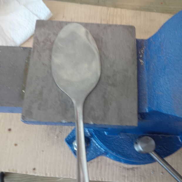Utilicé un trozo de madera de pino para mi cuchara de madera. Sacó el contorno de la cuchara. Utilice una regla para la manija y la lata de pintura para marcar las partes curvadas de la cuchara. Se trata de una forma aproximada para empezar. Evitar i