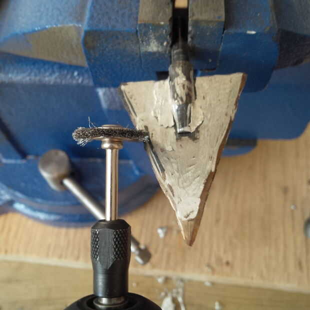 Limpiar el broadhead con la punta de pulido y una punta de cepillo de alambre.