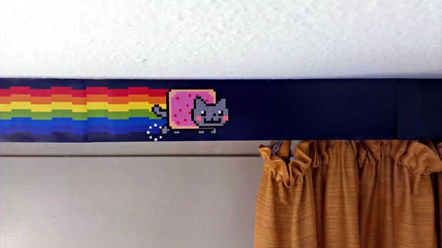 Hacer Nyan Cat volar por encima de sus cortinas, ocultar los rieles de cortina / barra.